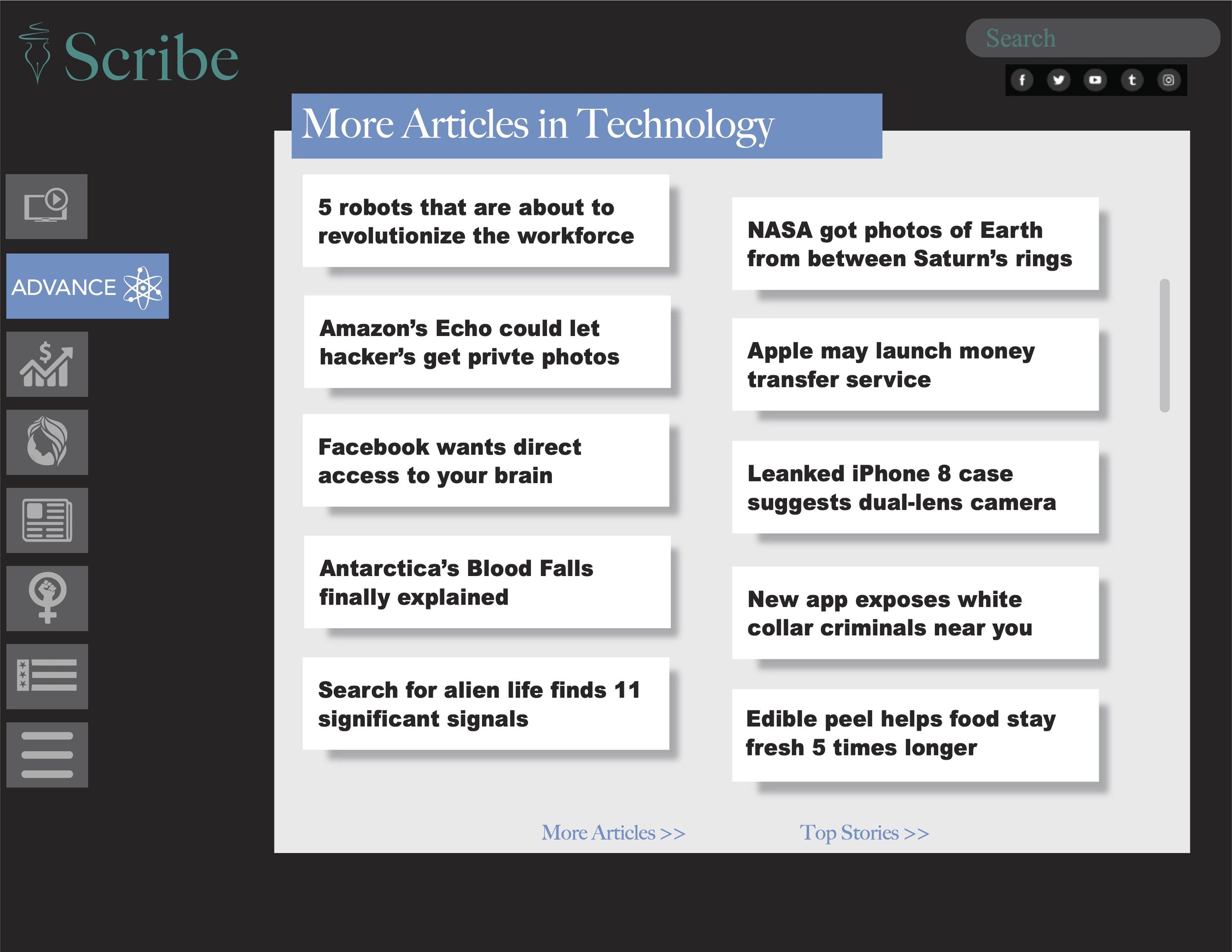 Scribe is a comprehensive rebrand project focused on redefining the visual identity and digital presence of a modern news outlet. The project included the redesign of the logo, website, and social media system to create a cohesive, contemporary brand that reflects clarity, credibility, and accessibility. Through refined typography, a streamlined color palette, and a responsive web experience, the rebrand positions Scribe as a trusted yet forward-thinking media platform, built to engage today’s fast-moving, digitally connected audience.