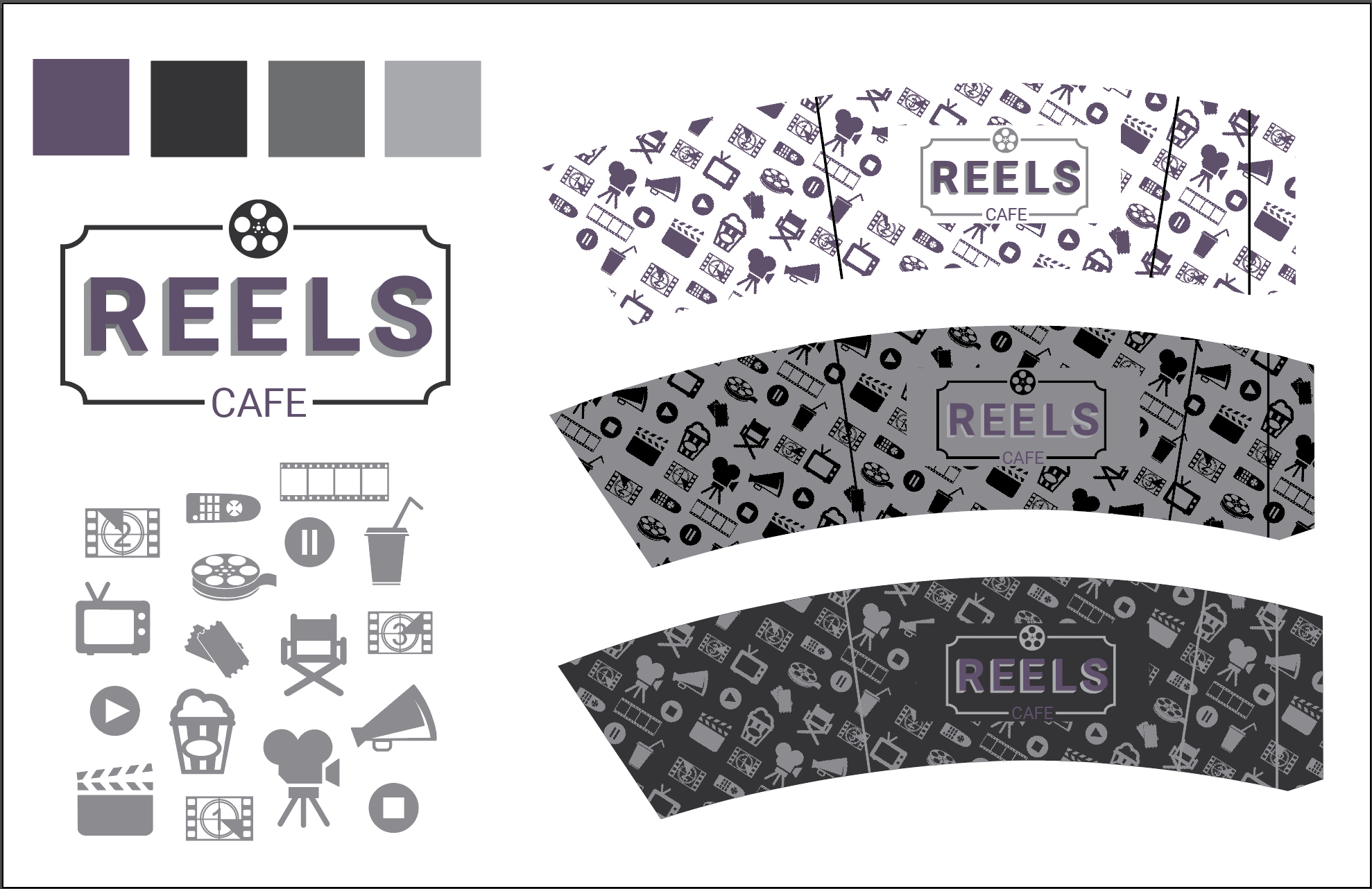 Reels Cafe is a cinematic-themed cafe brand developed as a branding project focused on nostalgia and storytelling. The concept reimagines a coffeehouse experience inspired by iconic films and TV culture, drawing subtle influence from shows like Friends and Stranger Things. The project explores visual identity, logo design, packaging, and brand voice to create a cohesive, immersive experience where movies and coffee culture meet — a space designed to make every sip feel like a scene.
